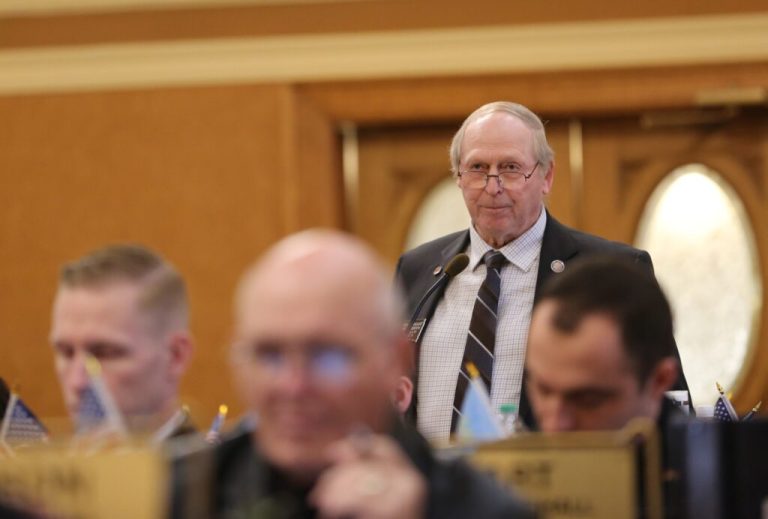 The South Dakota House of Representatives convenes on Feb. 5, 2024. (Makenzie Huber/South Dakota Searchlight) South Dakota Gov. Larry Rhoden