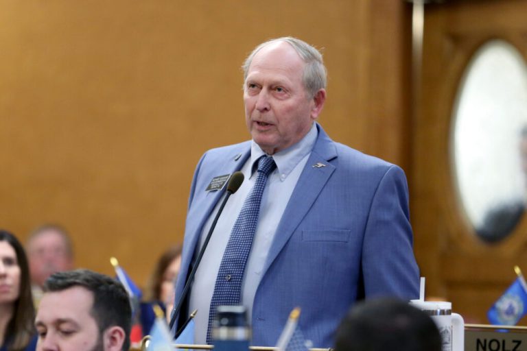 State Rep. Richard Vasgaard, R-Centerville, speaks on the South Dakota House floor during the 2025 legislative session. (Makenzie Huber/South Dakota