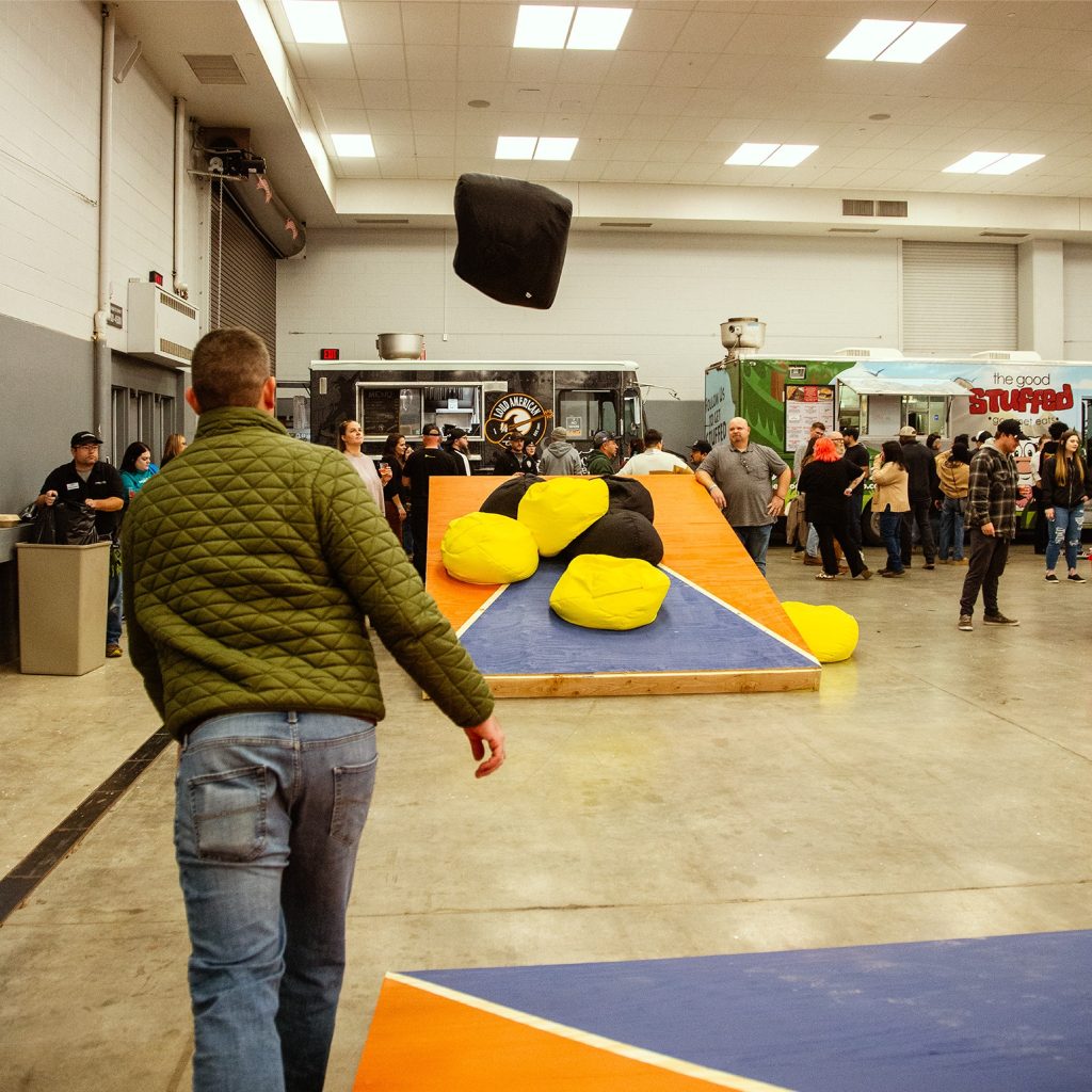 - Classic outdoor favorites like cornhole and human foosball, plus interactive games scattered throughout the venue.