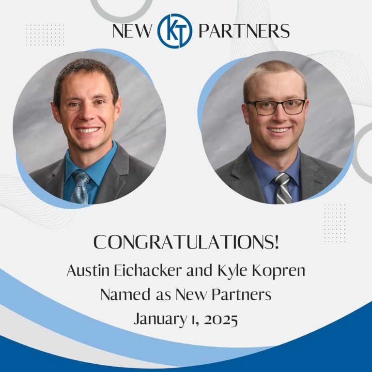 Austin Eichacker and Kyle Kopren Named as New Partners Effective January 1, 2025 Ketel Thorstenson, LLP (KT) announced the addition of two new Partners, Austin Eichacker, CPA, and Kyle Kopren, CPA. Both Eichacker and Kopren are based out of the firm’s Rapid City office. KT is a full-service accounting firm serving clients since 1936. KT […]
