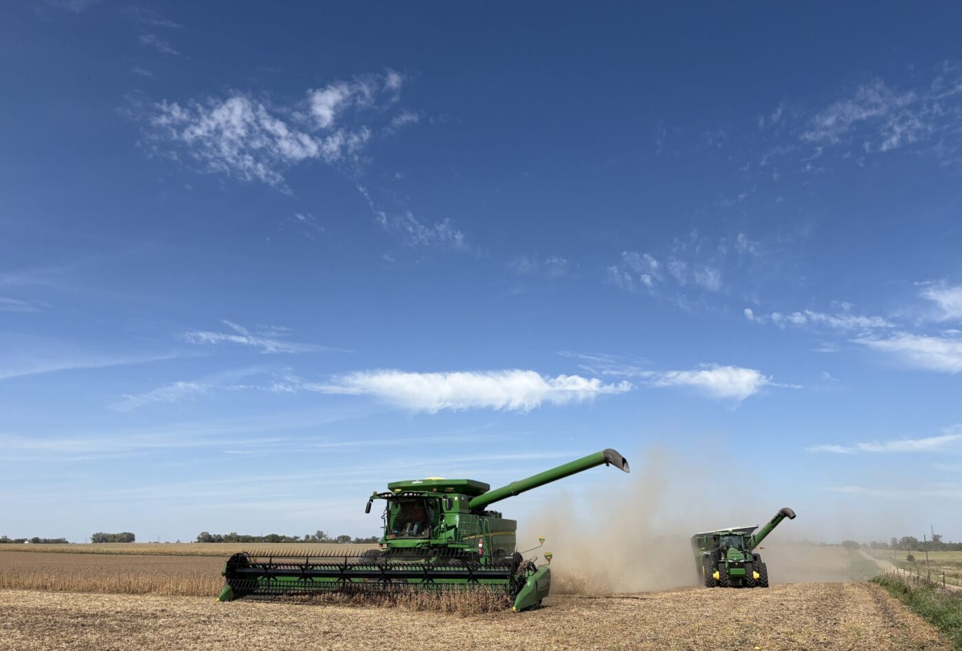 Andrew Streff drives his combine while harvesting soybeans on Sept. 29, 2025, near Salem. (Joshua Haiar/South Dakota Searchlight)