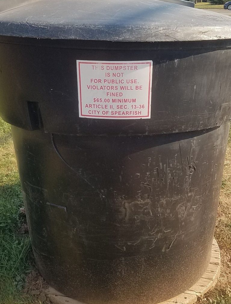 SPEARFISH, SD – Private trash receptacles and dumpsters, whether commercial or residential, are not for public use. When people use