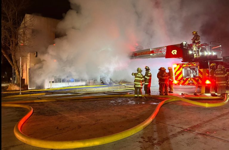SPEARFISH, SD – Early this morning, the Spearfish Fire Department, aided by additional local fire departments, knocked down a fire