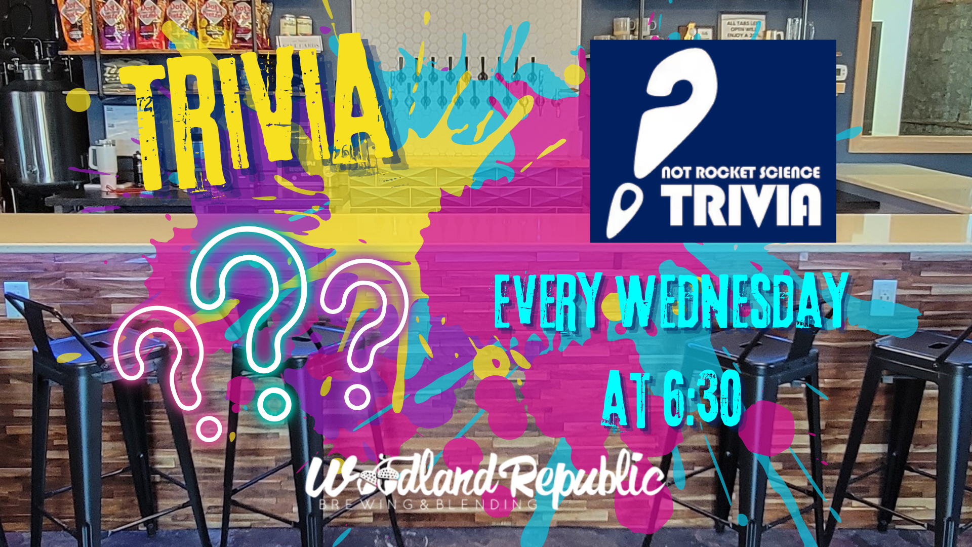 Join us Every Wednesday for trivia at Woodland Republic