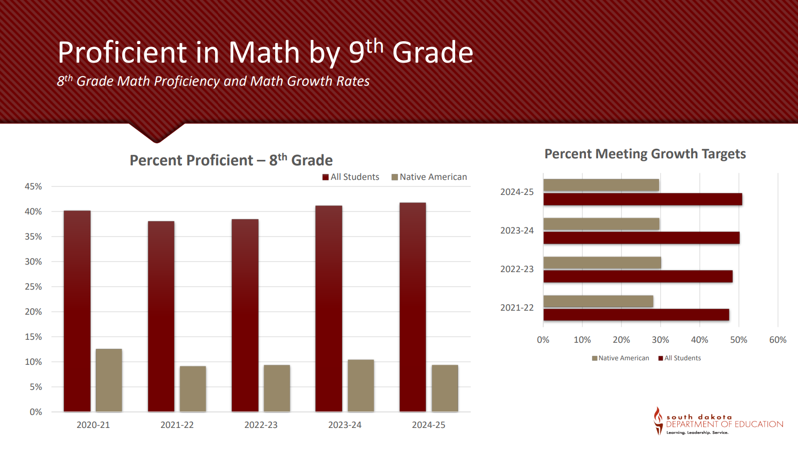 Eighth grade math proficiency among South Dakota students, 2020-2025. (Courtesy of the South Dakota Department of Education)