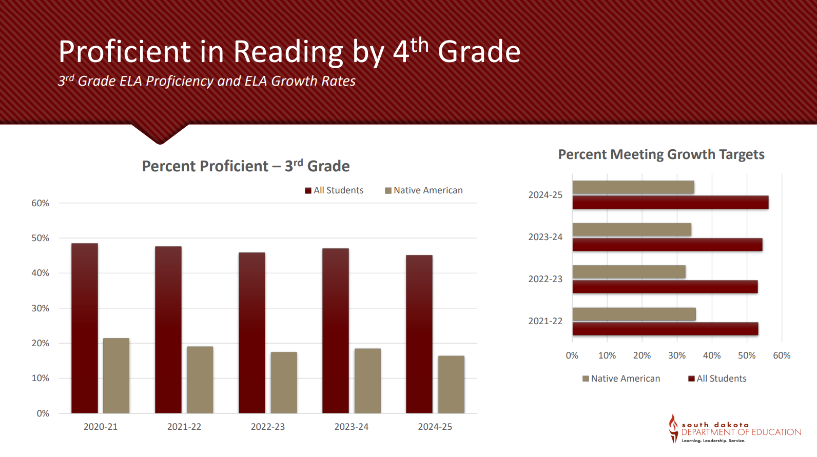 Third grade English and language arts proficiency among South Dakota students, 2020-2025. (Courtesy of the South Dakota Department of Education)