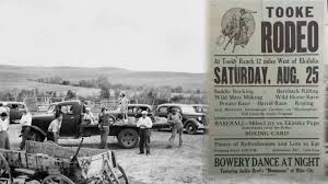 Feek built a house over the hill from the original homestead, where he began his now-famous bucking horse breeding program. While other brothers came and went, Feek and Fay managed the ranch and its daily operations. At young ages, the brothers started the Tooke Brothers Rodeo, constructing an arena on the ranch and holding their first rodeo on Memorial Day 1931. Feek managed the stock, Fay served as announcer, and the others handled behind-the-scenes work and provided entertainment. The events expanded to include boxing, baseball, wild mare milking, dances, and more. Word spread, and soon hundreds of spectators were attending from across Montana, Wyoming, and the Dakotas.