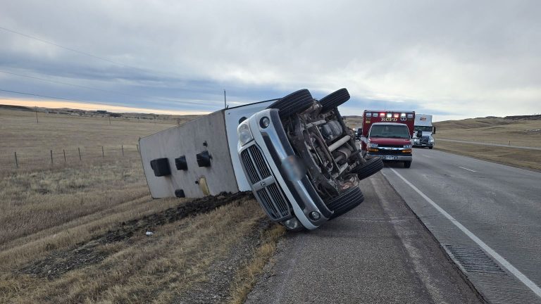 RAPID CITY, SD– A motor vehicle accident this morning involving a pickup truck and camper as high winds on Highway