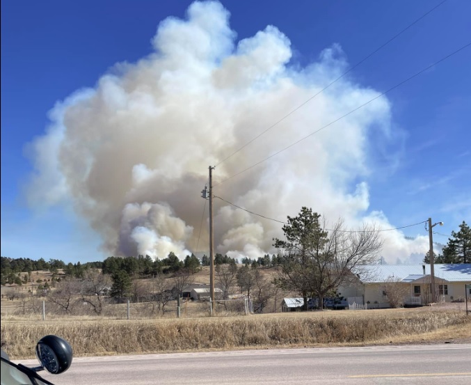 ROCKERVILLE, S.D. – Fire crews from surrounding agencies battled a wildfire late Saturday afternoon that led to the temporary evacuations